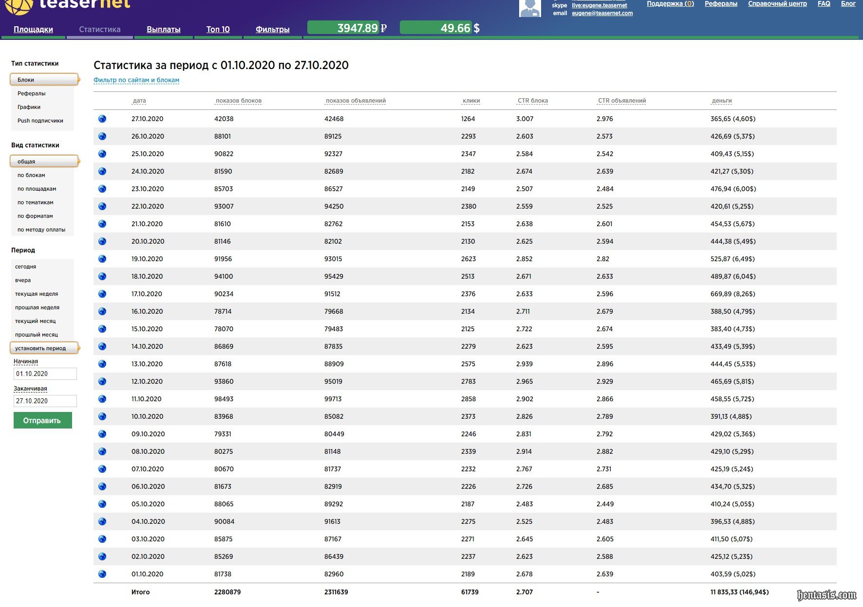 Закреплю свежий скрин статистики партнерки с баснословным доходом с сайта почти за месяц специально для Димона.